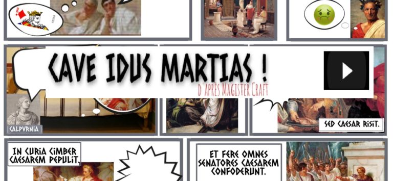 Salvete plurimum ! C’est avec cette salutation habituelle que nous accueille Magister Craft dans cette vidéo qui retrace la journée de César en ce jour des Ides de Mars 44. https://www.youtube.com/watch?v=1mWiUGPq7nc La bande dessinée à compléter que je propose est un exercice de réécriture qui s’appuie sur ce récit que l’on trouve en suivant ce … Lire la suite de CAVE IDUS MARTIAS ! BD la mort de César