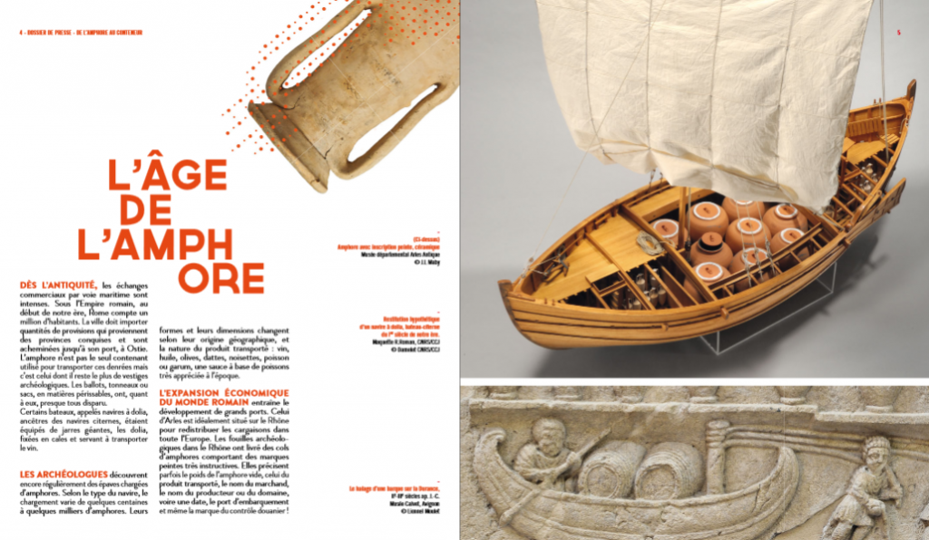L’EXPANSION ÉCONOMIQUE DU MONDE ROMAIN entraîne le développement de grands ports. Celui d’Arles est idéalement situé sur le Rhône pour redistribuer les cargaisons dans toute l’Europe. Les fouilles archéologiques dans le Rhône ont livré des cols d’amphores comportant des marques peintes très instructives. Elles précisent parfois le poids de l’amphore vide, celui du produit transporté, le nom du marchand, le nom du producteur ou du domaine, voire une date, le port d’embarquement et même la marque du contrôle douanier ! »