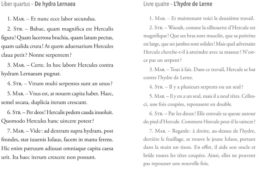 É.B. : Le fait que ce soit de courts dialogues permet une utilisation aisée en classe dès le collège. Il me semble que c’est un support qui a plusieurs cordes à son arc ! Et pourquoi ne pas proposer aux élèves d’écrire (en latin ou en français) un nouveau travail d’Hercule ?