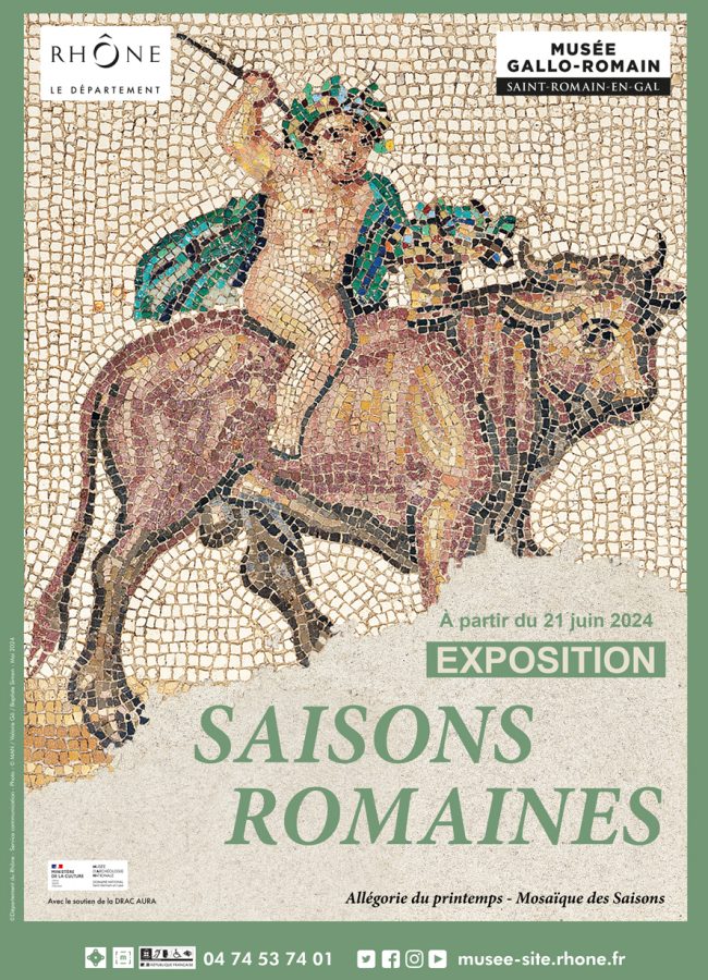L’exposition Saisons romaines, organisée avec le Musée d’Archéologie nationale de Saint-Germain-en-Laye, permet de découvrir la mosaïque dite des Saisons, datant du 3ème siècle de notre ère. La mosaïque représente des