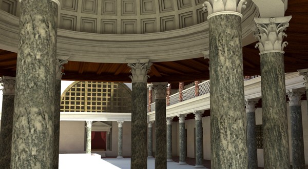 – des restitutions virtuelles (Réalisation : Ch. Morineau, N. Lefèvre – Documentation : S. Madeleine, Ph. Fleury, 2012) : le temple, la maison des Vestales, la façade extérieure, les boutiques donnant sur le forum…