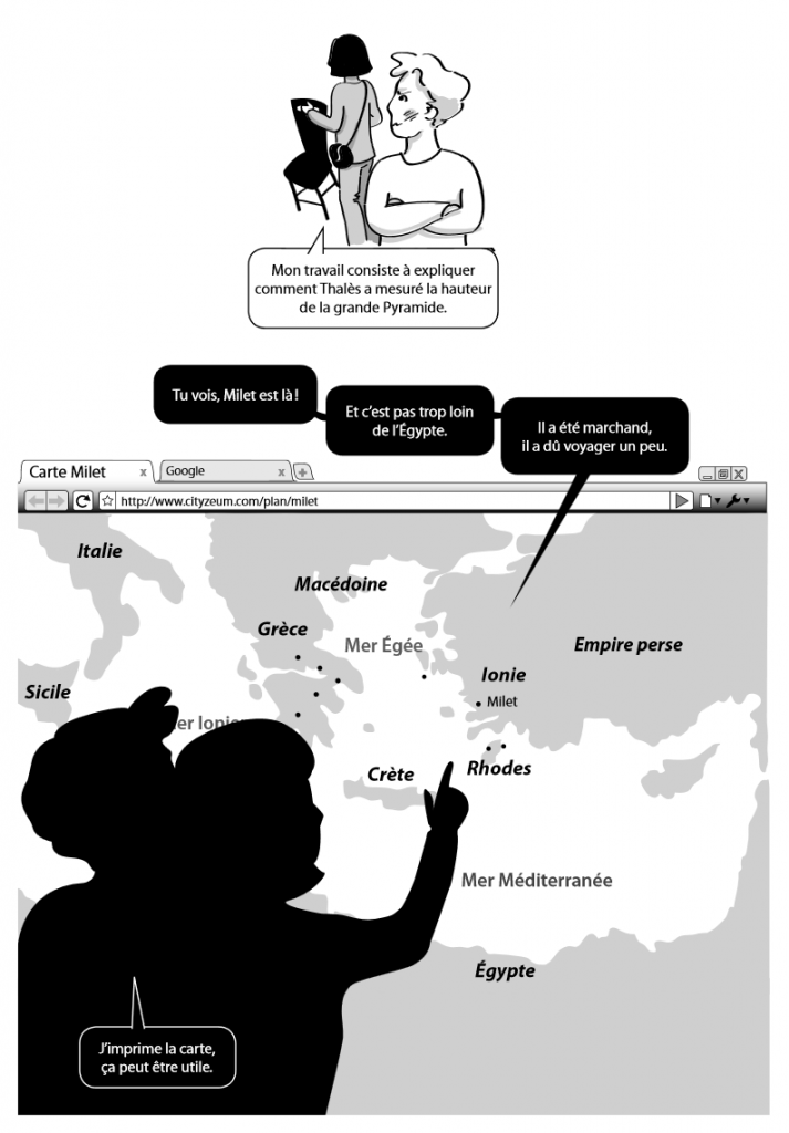 Zia a une recherche à faire sur Thalès de Milet. En cliquant sur un lien qui propose des rencontres virtuelles, son frère et elle se retrouvent à Milet, à l’époque de Thalès.