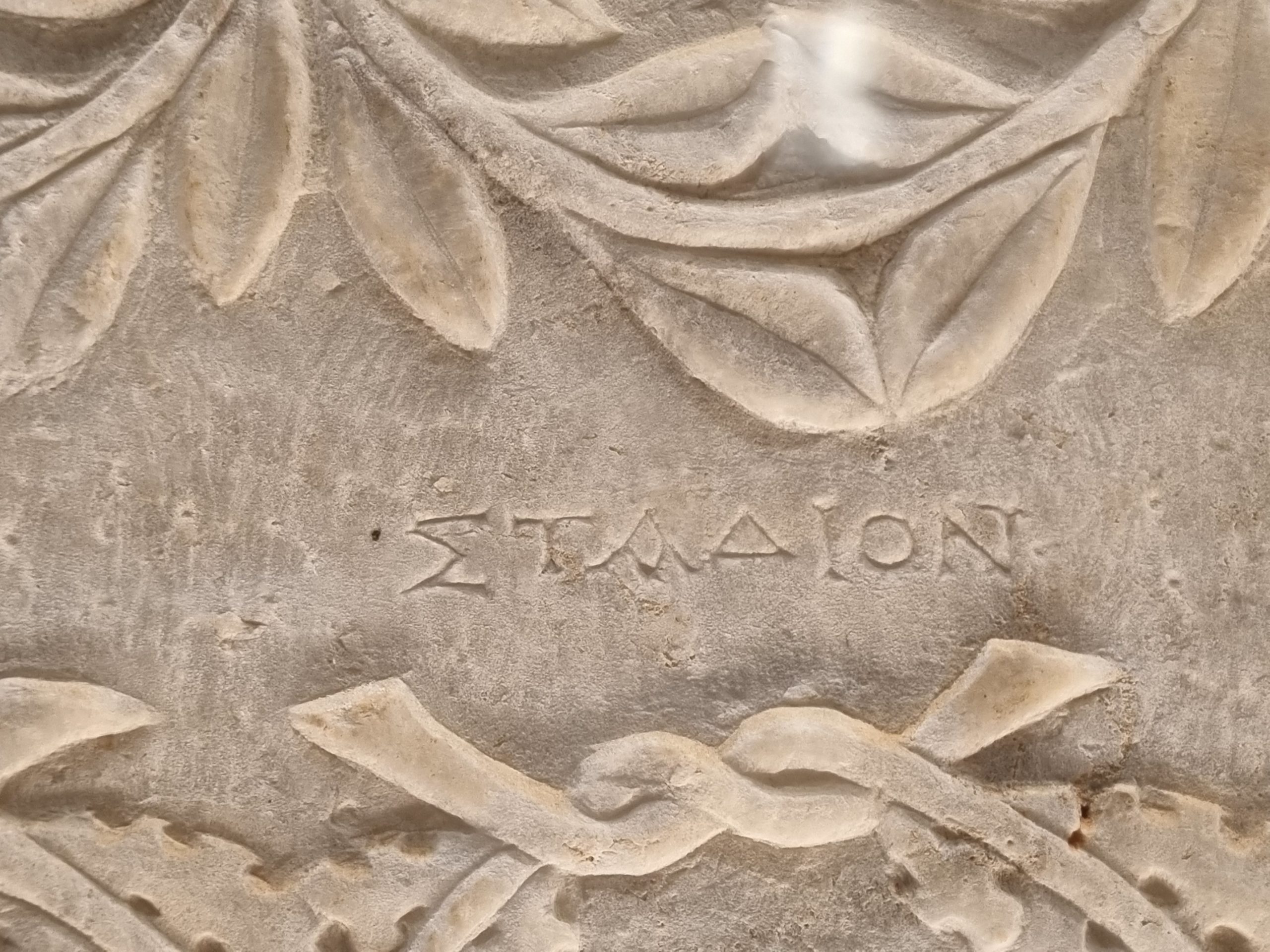 Voici une sélection d’inscriptions en grec ancien qui figurent sur cette stèle. Il s’agit du nom des épreuves sportives.