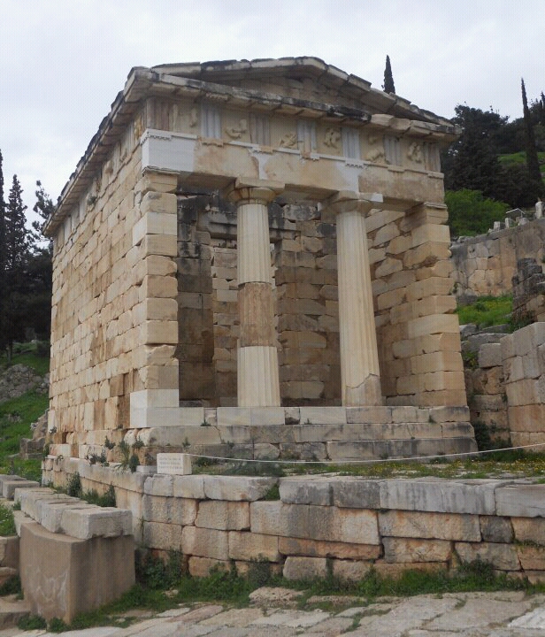 Le Trésor des Athéniens dans le sanctuaire d’Apollon à Delphes, source : article Wikipédia sur le Trésor des Athéniens