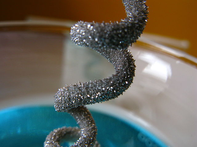 Arbre de Jupiter, obtenu à partir d’un clou de zinc et d’une solution d’ions étain.