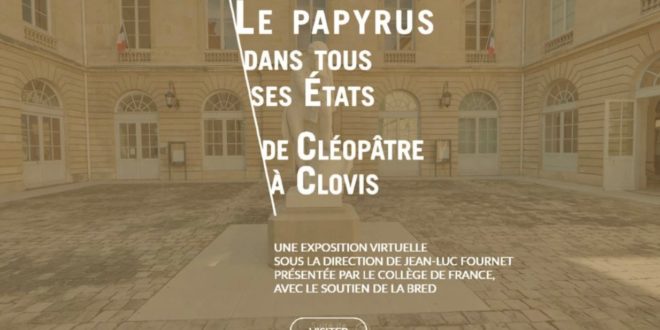 À l’automne 2021, l’exposition « Le papyrus dans tous ses États, de Cléopâtre à Clovis », dirigé par le Pr Jean-Luc Fournet et organisée au Collège de France avec le soutien de la BRED et en partenariat avec les magazines L’Histoire et Télérama, a rassemblé dans le grand foyer du Collège de France une soixantaine de pièces datant de l’Égypte antique jusqu’au début du Moyen Âge, présentant l’histoire de ce qui pendant plusieurs millénaires constitua dans tout le pourtour méditerranéen le support essentiel de l’écriture.