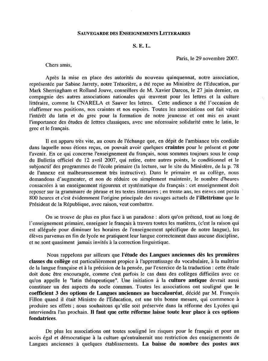 29/11/2007 : La section de Latin du Lycée-Collège du Diois montrée en exemple dans la lettre nationale de l'association S.E.L. (Sauvegarde des Enseignements Littéraires). ça fait toujours plaisir !
