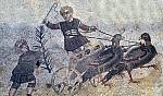 015. Mosaïque d'une villa romaine représentant un garçon conduisant un char tiré par des oiseaux et recevant la palme de la victoire ; 4ème s. p.C. - Piazza Armerina, Villa del Casale. Crédits: Barbara McManus, 1982