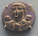 004. Médaillon de Germanicus (20-40 p.C.), frère de Claudius et mari d'Agrippina Major. Germanicus est présenté entouré par les têtes de trois de ses six enfants représentés enfants.