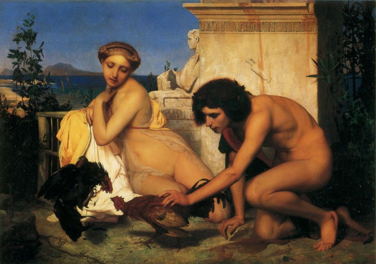 1846 Gerome Jean-Leon, Jeunes Grecs faisant battre des coqs Young Greeks making beat cocks.jpg